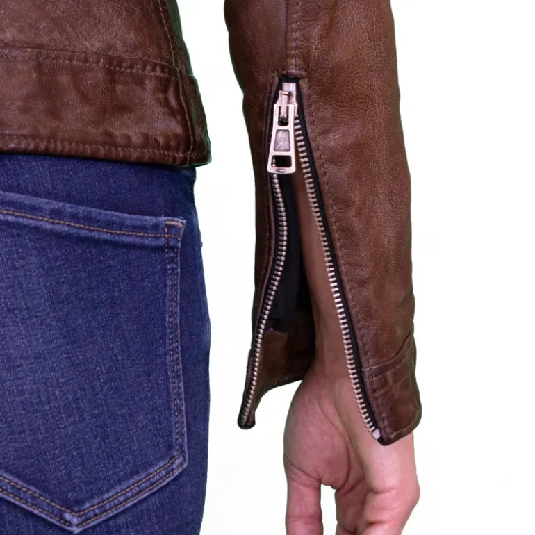 Stylowa i designerska kurtka skórzana damska zapinana jest na zamek, który został lekko przemieszczony w prawą stronę. Natomiast jej kołnierz jest rozkładany. Można go przyczepić za pomocą klipsów do kurtki. Dodatkowo model ten posiada kieszenie na zamek, umieszczone po bokach. Kurtka skórzana damska Toscana została wyprodukowana z bardzo wyselekcjonowanego materiału. Jest nim skóra jagnięca, która urzeka pięknem i miękkością. Dzięki temu model Toscana jest niezwykle wygodny.