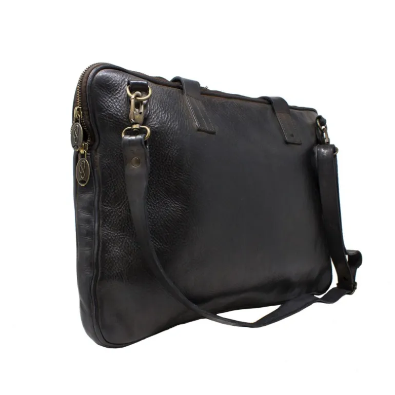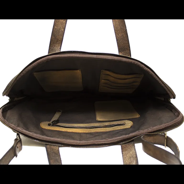 Na zewnątrz: Pasek z możliwością regulowania długości pozwala on nosić teczkę na ramieniu, zamknięcia na zamek. Wykonana ze skór vacchetta garbowanych roślinnie. Po etapie wykrojenia oraz zszycia teczki, zostaje ona zanurzona w specjalnym roztworze, co pozwala nadać jej trwały kolor. Następnie jest ona poddawana naturalnemu procesowi suszenia, podczas którego odzyskuje pierwotny kształt. Podwójne szycia przy użyciu woskowanych nici.