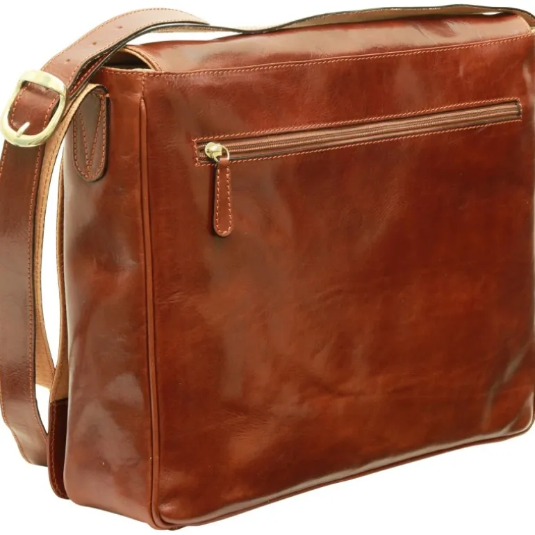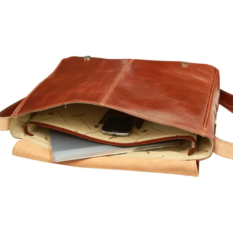 „Stuttgart” Torba typu messenger ze skóry 100% made in italy garbowanej roślinnie i ręcznie gąbką