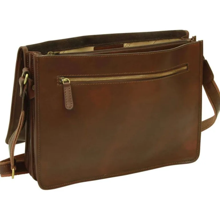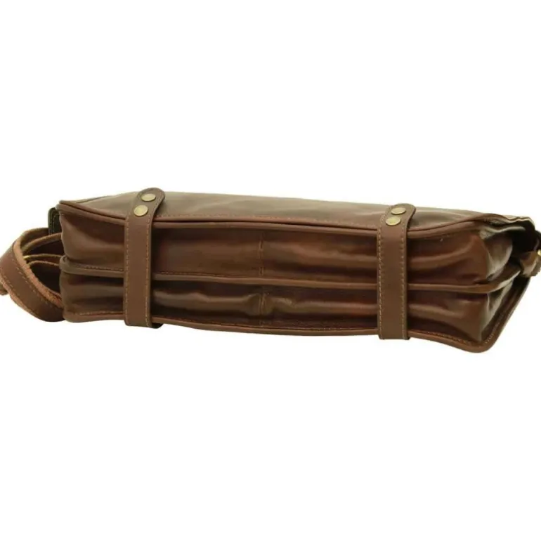 Materiał: skóra cielęca garbowana roślinnie. Wysokość cm 30, szerokość cm 40, głębokość cm 10, długość paska na ramię 120 cm, waga kg 1,1. Zamknięcie: z metalowym zamkiem błyskawicznym.