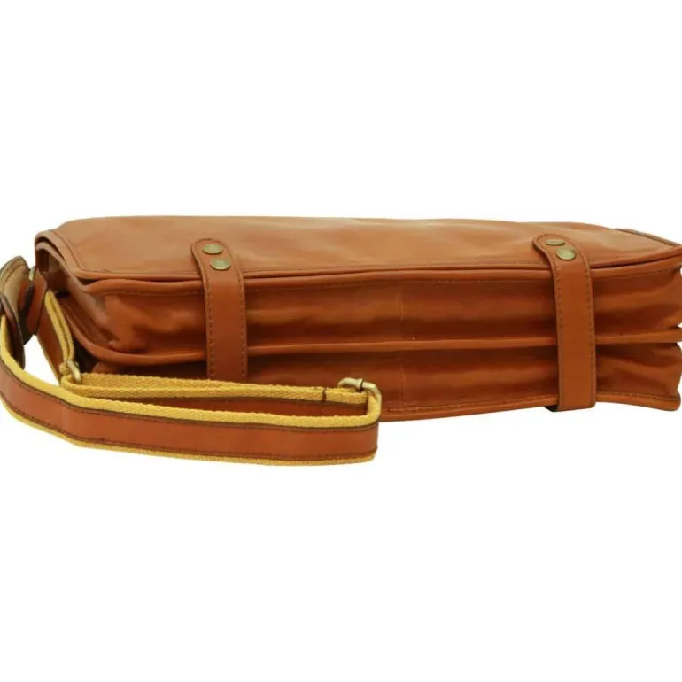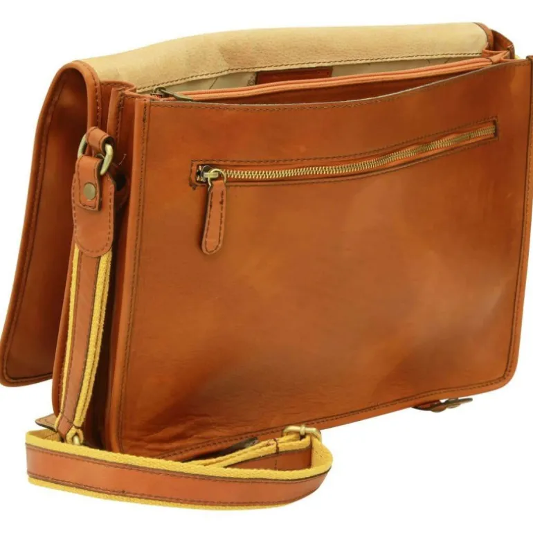 Materiał: skóra cielęca garbowana roślinnie. Wysokość cm 30, szerokość cm 40, głębokość cm 10, długość paska na ramię 120 cm, waga kg 1,1. Zamknięcie: z metalowym zamkiem błyskawicznym.