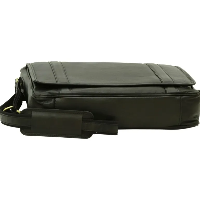 Torba męska na ramię ze skóry cielęcej garbowanej roślinnie. Czarny kolor. Podszewka bawełniana.Padded compartment for 13″ laptop. Kieszonka wewnętrzna na telefon. Kieszeń zewnętrzna na suwak. Klapka na magnes. Pasek ze skóry i bawełny z możliwością regulowania długości.