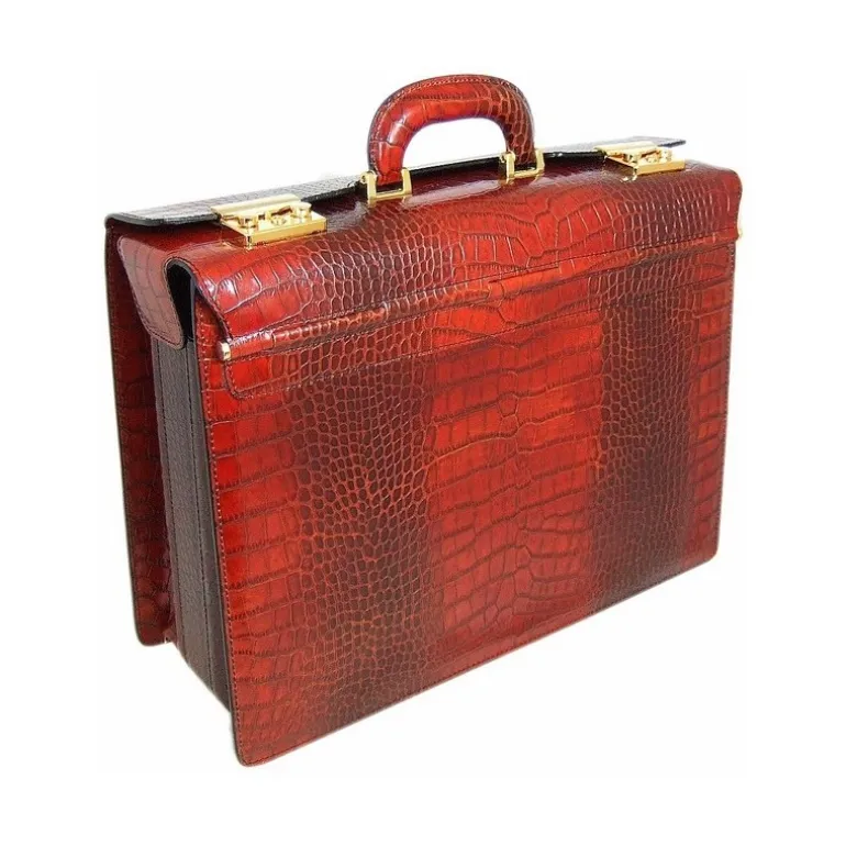 Torba Pilot ze skóry. Torba posiada bardzo szerokie otwarcie, które zapewnia swobodny dostęp do jej wnętrza. Wewnątrz trzy komory, komora środkowa została dodatkowo wzmocniona od dołu, nie dotyka ziemi po postawieniu walizki, stąd doskonale nadaje się na umieszczenie w niej laptopa. Kieszonki wewnętrzne na telefon, długopisy i wizytówki; dodatkowo wygodny kieszonka na okulary lub długopisy z tyłu. Na dnie 4 metalowe nóżki, które zabobiegają kontaktowi z ziemią i ewentualnym zniszczeniom. W wyposażeniu bawełniany worek. Materiał Skóra cieleca. Szerokość zew. 43 cm – wew. cm 39,5. Wysokość zew. 33 cm – wew. cm 30. Głębokość zew. 18 cm – wew. cm 17. Rączka Metal pokryty skórą. Części metalowe Mosiądz. Zamknięcie dwa na klucz. Waga kg 2,5.