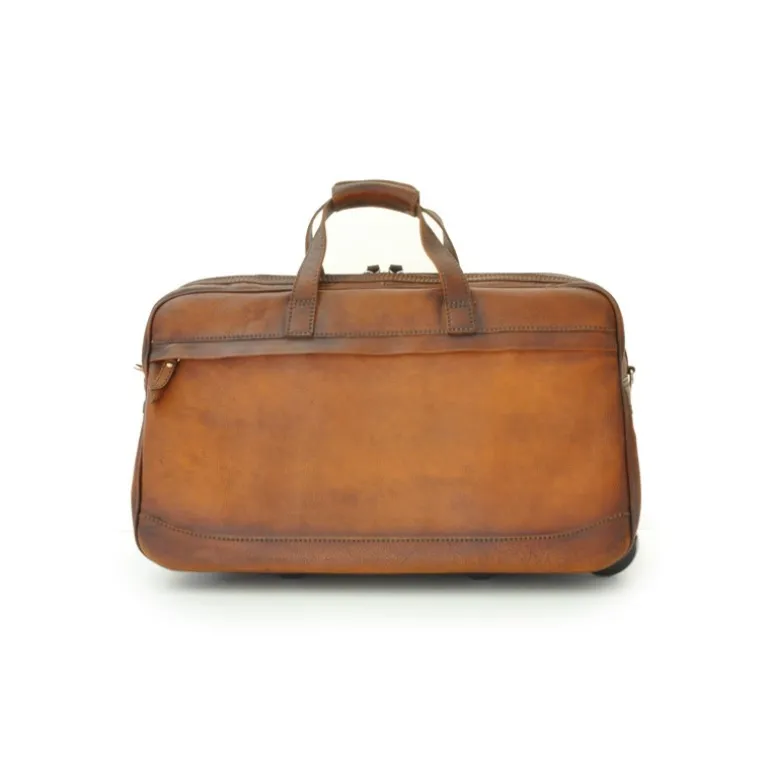 Mała torba trolley podróżna skórzana „transiberiana”. Podszewka bawełniana, wewnątrz i z przodu kieszeń na suwak, pasek z karabińczykami bez możliwości regulowania długości + nakładka na ramię.