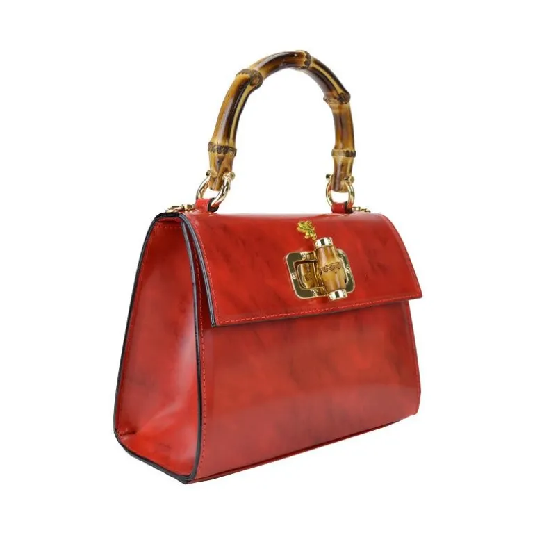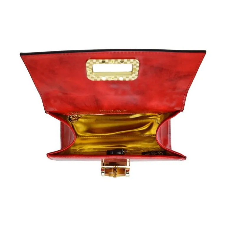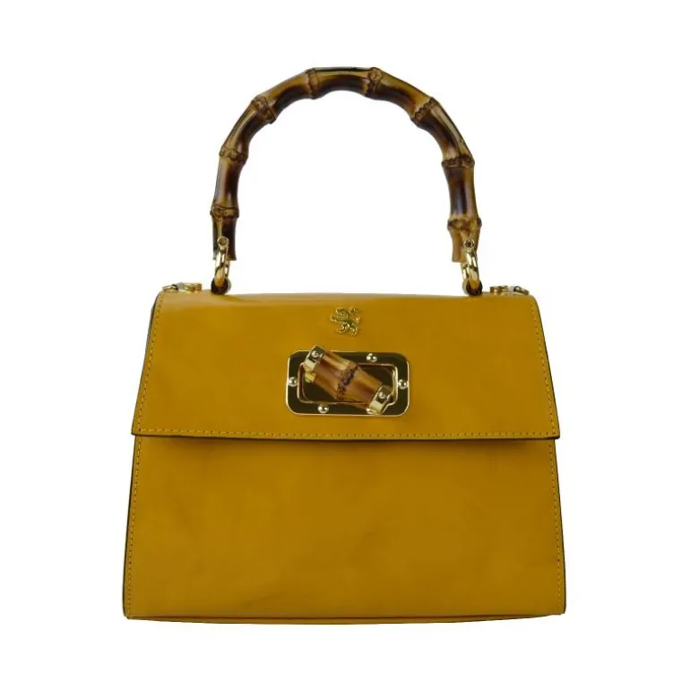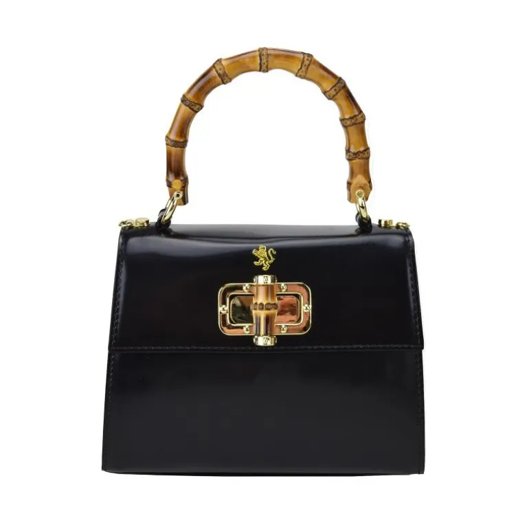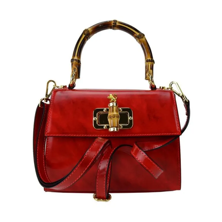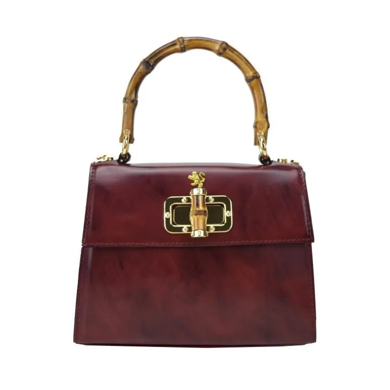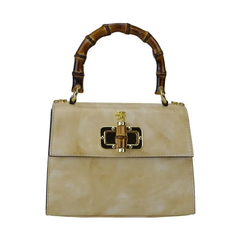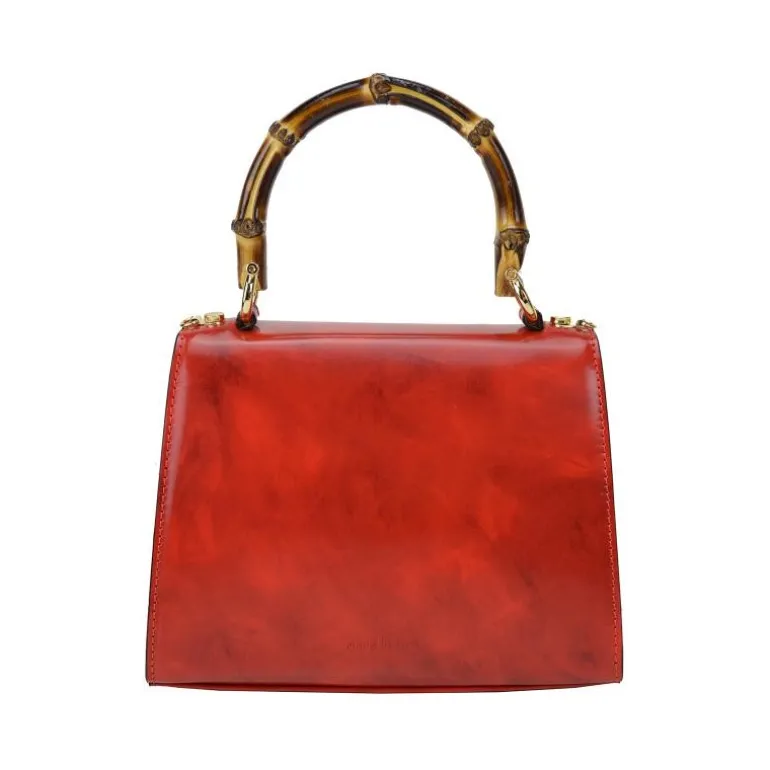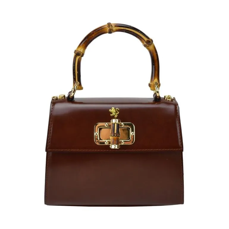 Materiał Skóra cielęca. Szerokość 23 cm. Wysokość 18 cm. Głębokość 11 cm. Rączka Bamboo. Zamknięcie – Mechanizm zamykający. Waga 0,7 Kg. Pasek ze skóra.