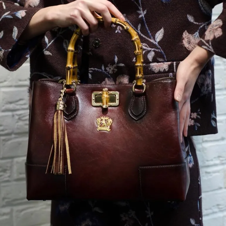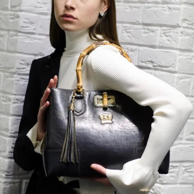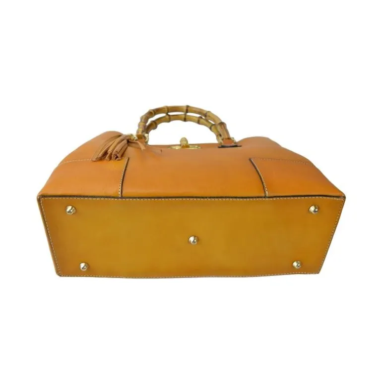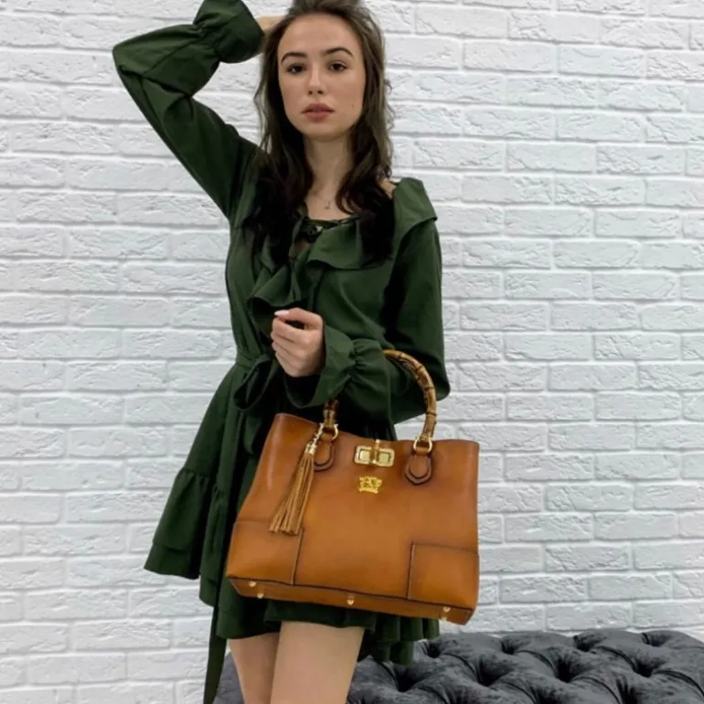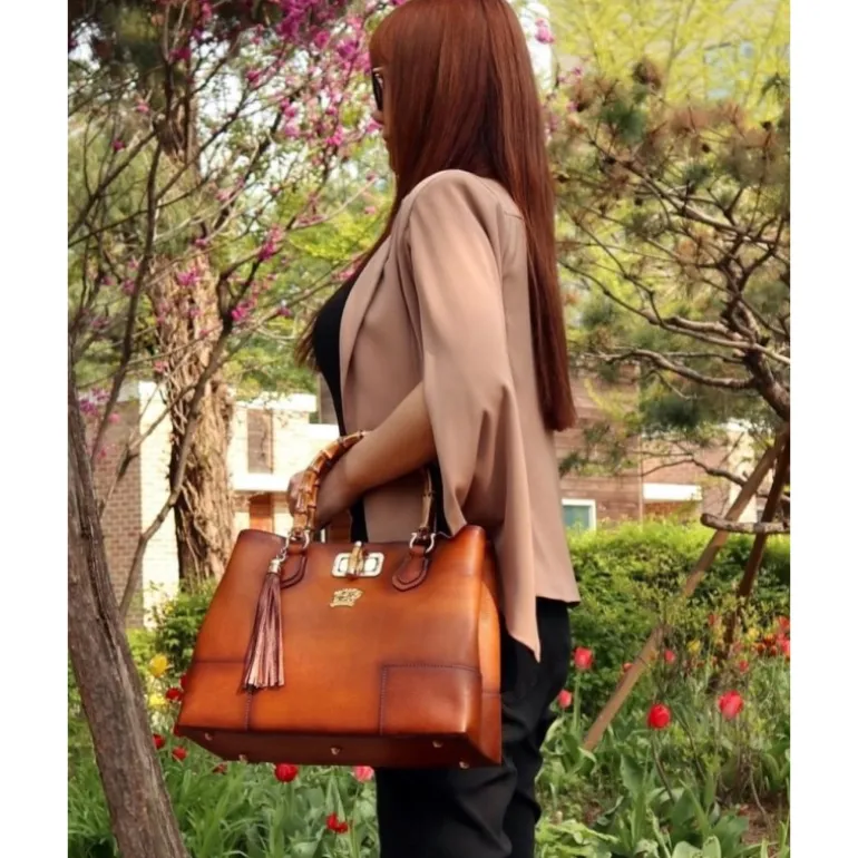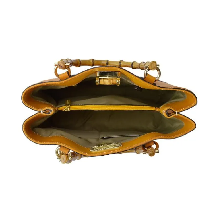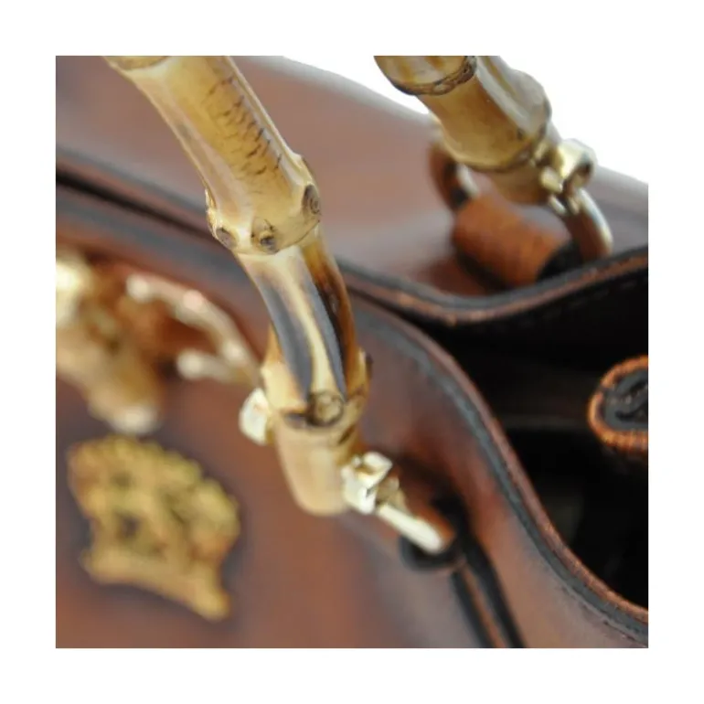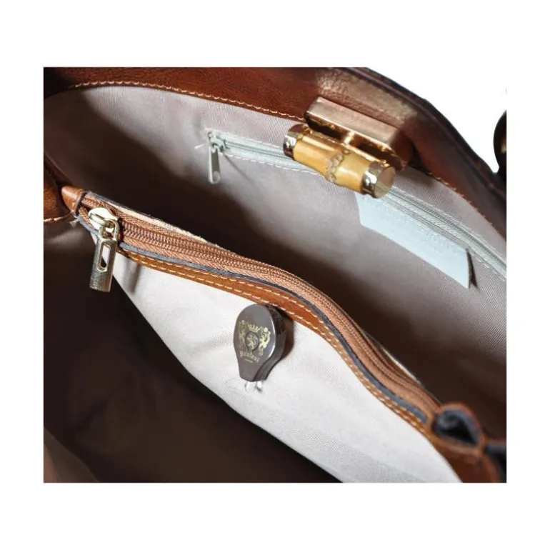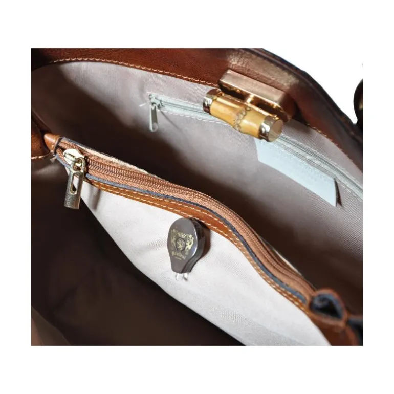Materiał Skóra cielęca garbowana roślinnie, szerokość 37 cm, wysokość 25 cm, głębokość 14 cm, Zakręcane zamknięcie. Waga kg 0,9