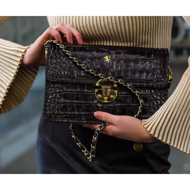 Wieczorowa kopertówka damska ze skóry z łańcuszkiem o klasycznym designie to model, którego nie może zabraknąć w garderobie żadnej stylowej kobiety. Torebka Lucrezia de Medici powstała z włoskiej skóry, garbowanej szlachetnie w oparciu o tradycyjne metody. Stylowa i drobiazgowo wykonana, zawsze wywoła odpowiednie wrażenie. Doskonale zdaje egzamin podczas oficjalnych wyjść, ale świetnie sprawdzi się również do noszenia na co dzień. Z biegiem czasu torebka nie traci swego uroku, wręcz przeciwnie, nawet po latach wciąż olśniewa ponadczasowym stylem oraz prestiżowymi wykończeniami.