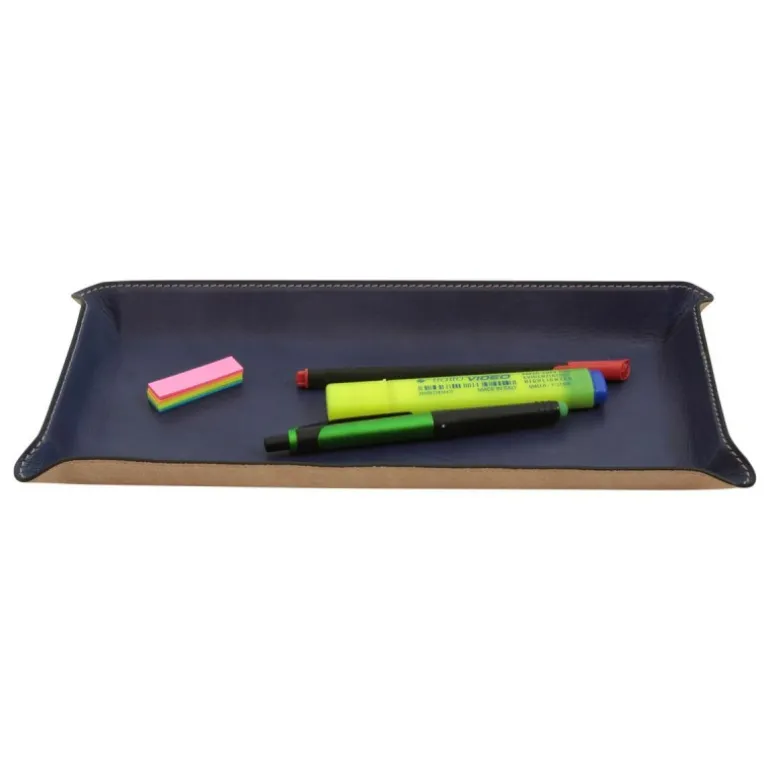 Zestaw na biurko ze skóry „Warszawa” granatowy kolor. Piękny, prosty a zarazem niezbędny zestaw ze skóry cielęcej to wyjątkowa oprawa dla Twojego biurka. Zestaw składa się z 5 elementów, którymi są podkładka pod myszkę, prostokątny pojemnik na drobiazgi, pojemnik na długopisy, podstawka pod iPada i iPhone’a oraz podkładka na biurko. Wszystkie elementy zostały wykonane z najlepszych gatunkowo skór przez wprawione ręce florenckich rzemieślników.